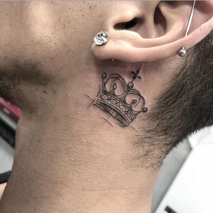 @ghosttat2 / Instagram 20. Татуировка на шее с коронойВыбирая заднюю часть шеи или верхнюю часть ключицы, татуировки на шее с короной — отличный вариант для мужчин, которые не хотят скрывать свои татуировки. Хотя задняя часть шеи может быть более тонкой, помните, любую татуировку на шее будет трудно скрыть.