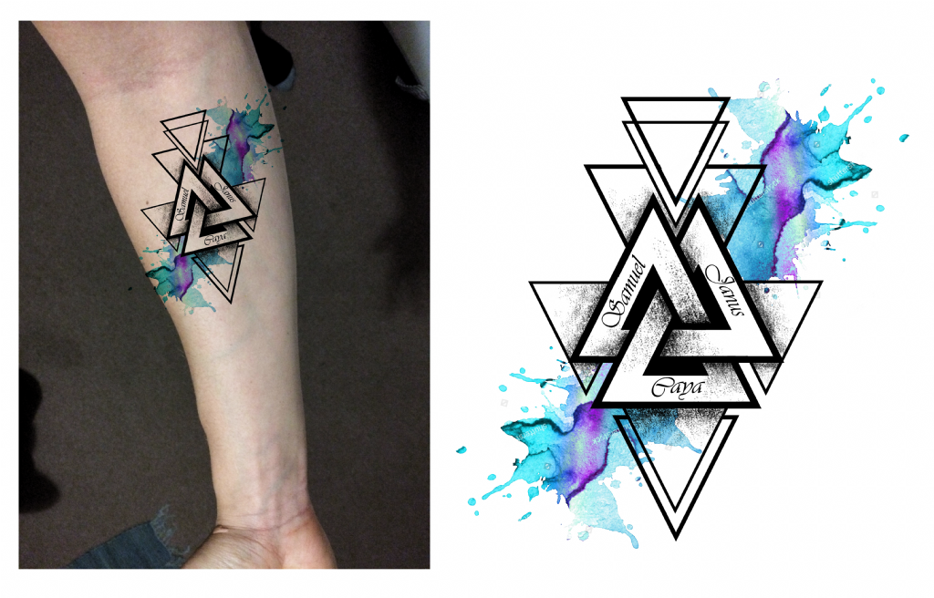 Прекрасная татуировка, сочетающая в себе художественную и научную природу. Это определенно для умного парня, который также имеет более глубокое понимание природы и духовности. Переплетенные треугольники, изображающие притяжение противоположностей, которое считается фундаментальной силой природы. Эта татуировка для посвященных.