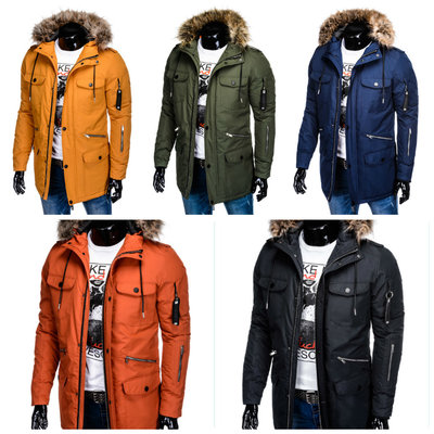 Бушлат надежно защищает от порывистого ветра и непогоды. Куртка длиной до основания бедра смотрится стильно и аккуратно. Материалом для пошива бушлатов служит плотная шерсть, которая пропитана специальным составом, что позволяет сделать шерстяную ткань непромокаемой. - Паркой называют удлиненную зимнюю куртку. Обычно она имеет пушистый мех по периметру капюшона и много карманов. Парка по своему фасону является довольно объемной курткой, что позволяет эффективнее сохранять тепло. Для дополнительной защиты от холодного ветра на талии и по низу парки проведена шнуровка, которая не подпускает к телу холодный воздух. Считается, что парку изобрели в американской воздушной армии примерно в 50-х годах прошлого века. С тех пор этот тип куртки активно используется современными мужчинами. В качестве альтернативы классическому варианту выступают парки без дополнительного утеплителя. Такая куртка является более легкой по весу и может быть использована ранней осенью или поздней зимой. Парку шьют из специального денима, нейлона или хлопковой ткани.