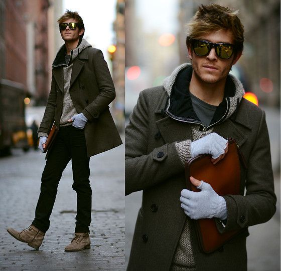 От моделей косой вязки (как показано здесь) до узоров Fair Isle — свитер крупной фактурной вязки станет универсальным дополнением к вашей зимней коллекции. Этот образ в уличном стиле понравится мужчинам, которые любят долгие прогулки в наушниках: не совсем белый свитер косой вязки сочетается с бежевым однобортным пальто, а черные брюки чинос и остроносые ботинки завершают образ.