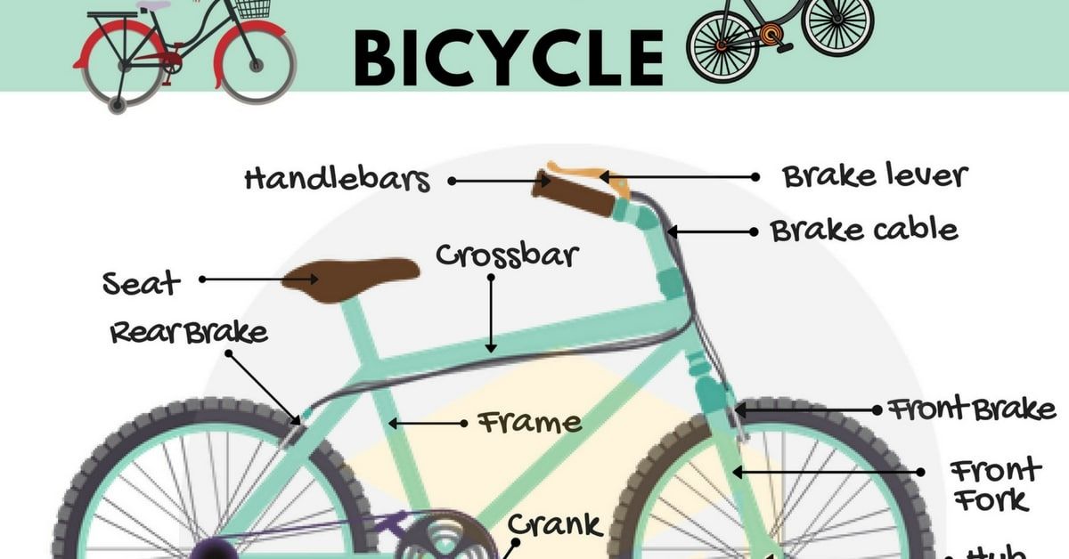 Названия частей велосипеда (parts of bike) и снаряжения на английском (bicycle accessories or equipment)