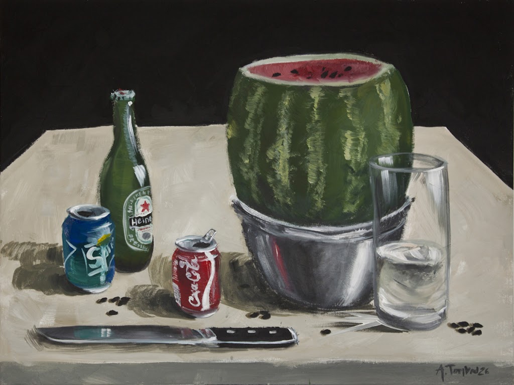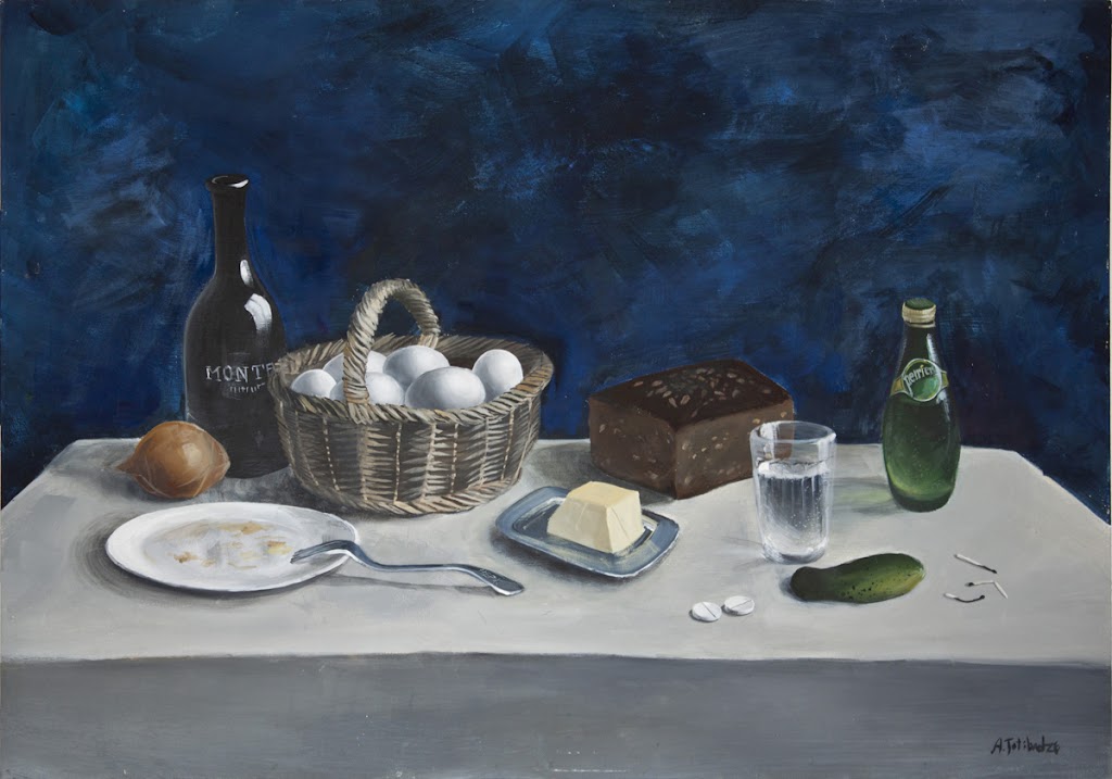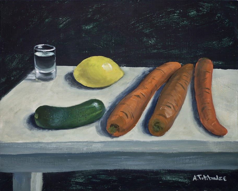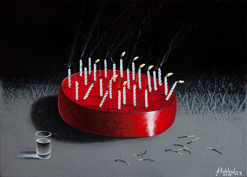 Лаконичные натюрморты и пейзажи Антона Тотибадзе визуально поражают воображение, многослойность красок передает ассоциации, аллюзии, юмор и повествование. Его объекты невероятно реалистичны, поскольку мы видим героев их собственных историй, и в то же время намеки на то, что только что произошло или вот-вот произойдет: праздники, несостоявшиеся свидания, воспоминания, тайны, драмы и комедии повседневной жизни.