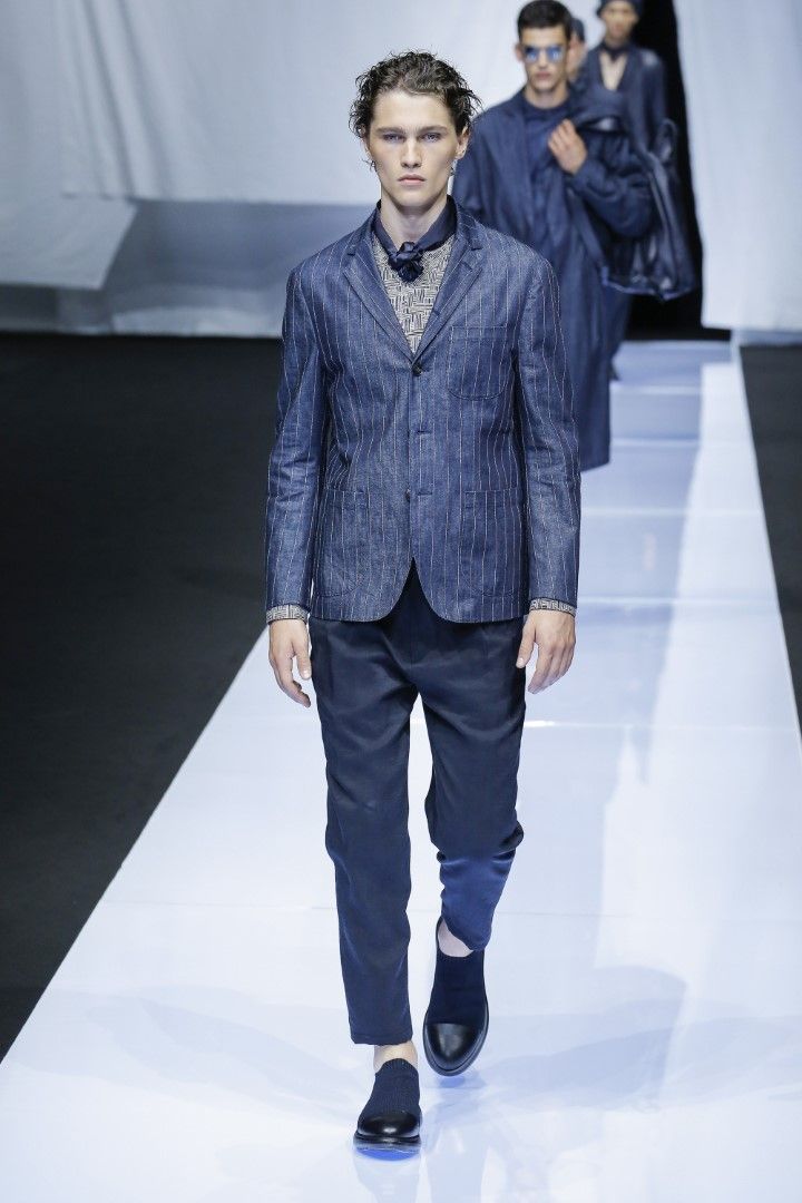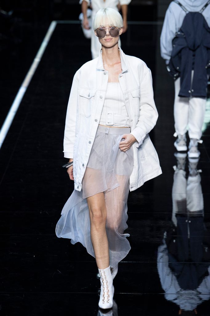 Итальянский модельер Джорджио Армани представил коллекцию Emporio Armani Весна-Лето 2019 In Transit , вдохновленную идеями ловить момент и следовать своим инстинктам, в пятницу, 21 сентября.
