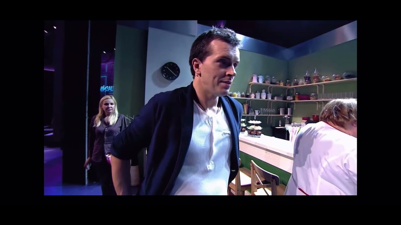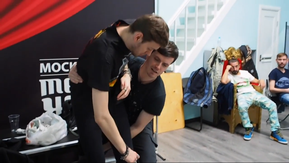 Рядом, верный друг и соратник, Дима Позов, страдает меньше, но и он уже переколошматил практически все бьющееся в их встроенной декорации. Позов пытается помочь, выхватывает из дрожащих рук импровизатора бутылку вина, дабы хоть что-то уцелело. Силы на исходе, нервы на пределе, и Антон не выдерживает…