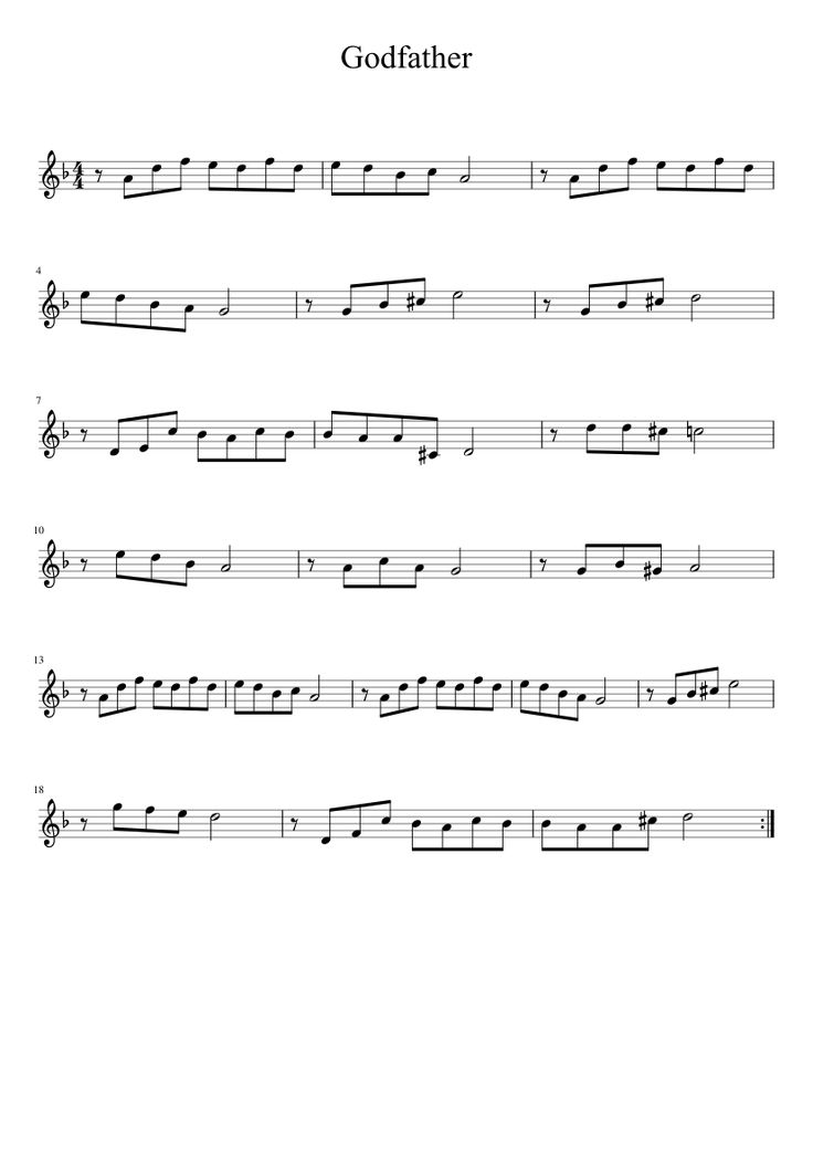 «Крестный отец » начинается со зловещего черного как смоль экрана, из которого выходит солирующая труба, донося эту безошибочно узнаваемую минорную фразу из семи нот, извиваясь вверх зловещими полутонами.