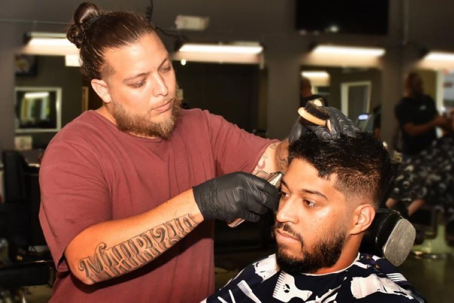 Стрижка включает в себя горячее полотенце и бритье шеи опасной бритвой.