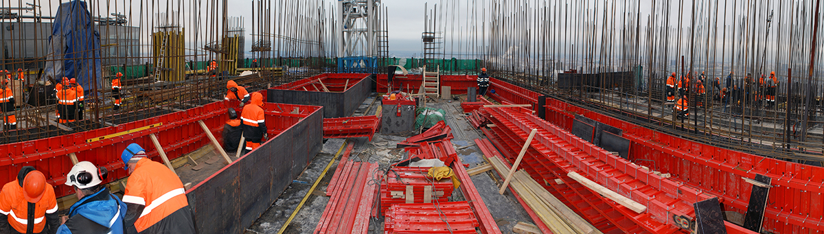 — Строительство «Башни Федерация» ведется круглосуточно, без перерывов и выходных. Строители работают в три смены. Ежедневно на объекте трудятся около 850 человек.