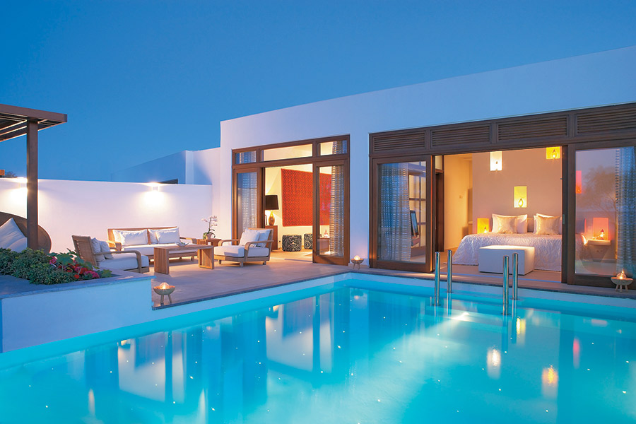 Место дарит беспроводную связь с матерью-землей: не удивляйтесь, если мимо окон вашего шатра деликатно пройдет газель. Мебель ручной работы и антиквариат, ароматерапия и процедура расул в спа, ужины на белой скатерти и прогулки по пустыне – все это достойно шейха, решившего поиграть в бедуина. Естественно, без бассейнов этот мираж был бы не столь манящим.