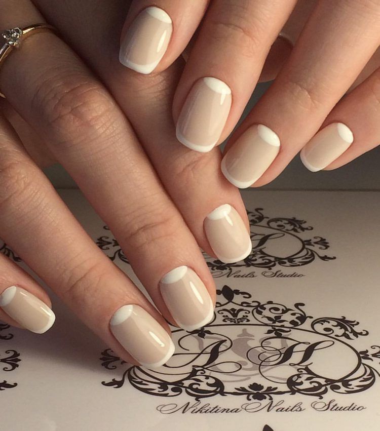 Бледно-розовый и бежевый, без сомнений, стали уже классикой френча. Этот лаконичный дизайн на нейтральном фоне может исполняться в самых разных цветах. Идеальная форма для него квадрат небольшой длины.
