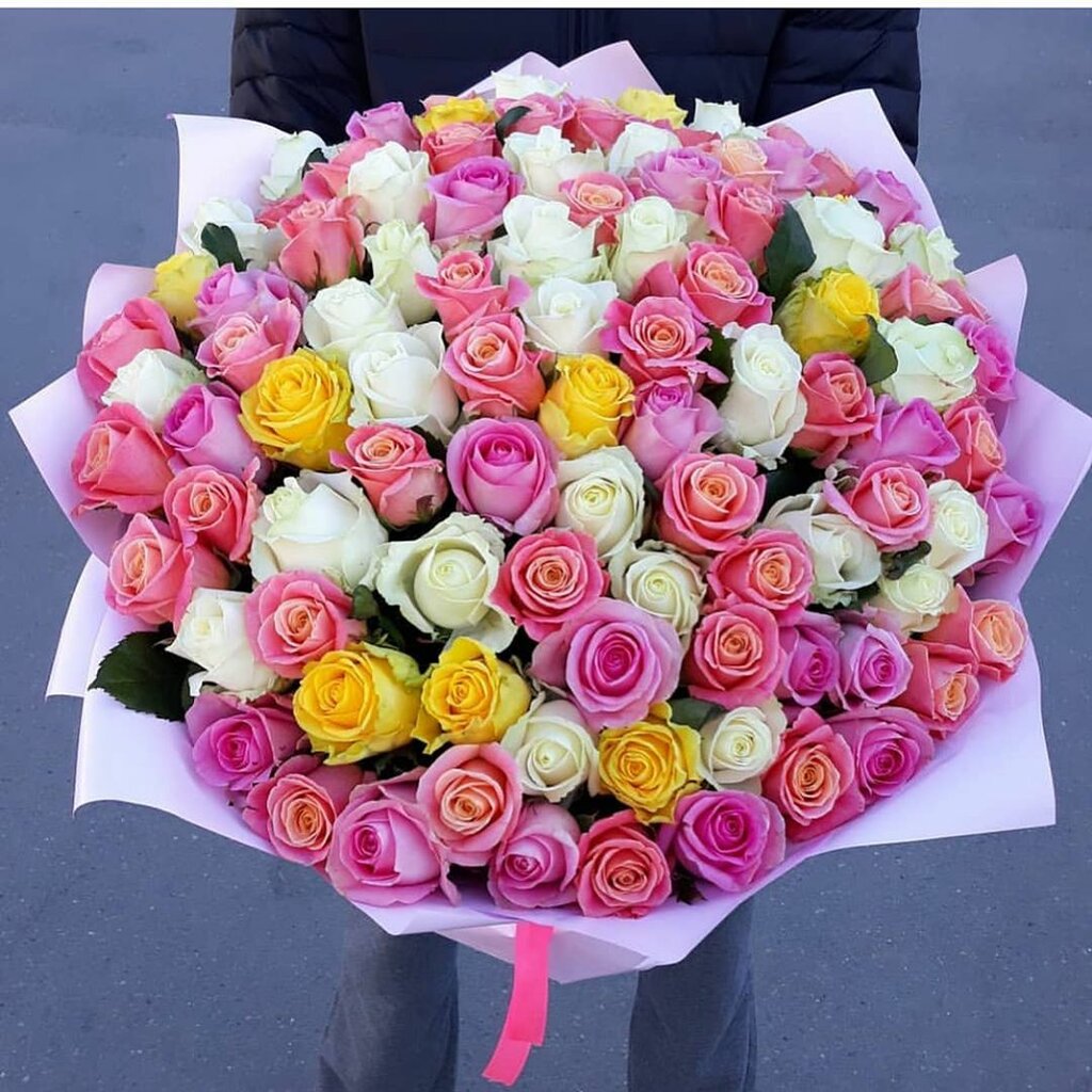 Вы найдете у нас шикарный выбор букетов роз самых популярных оттенков: белых, желтых, оранжевых, красных. Сочетание разных цветов в одном букете делают его особенно нарядным. У нас действуют удобная накопительная система скидок и приятные бонусы. Кстати, скидку можно получить уже при заказе первого букета. А доставка шикарных букетов из роз в Москве (за МКАД) производится нами бесплатно!