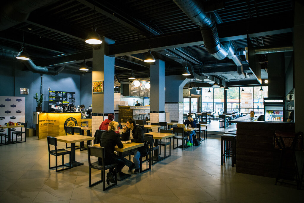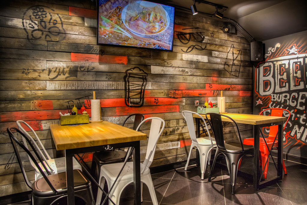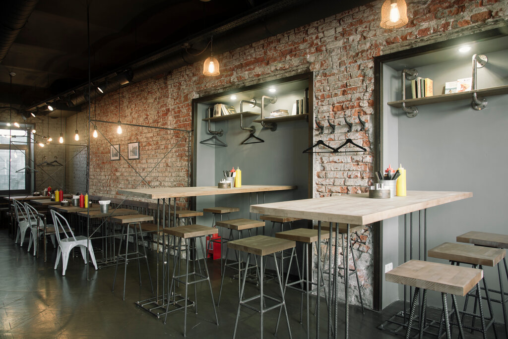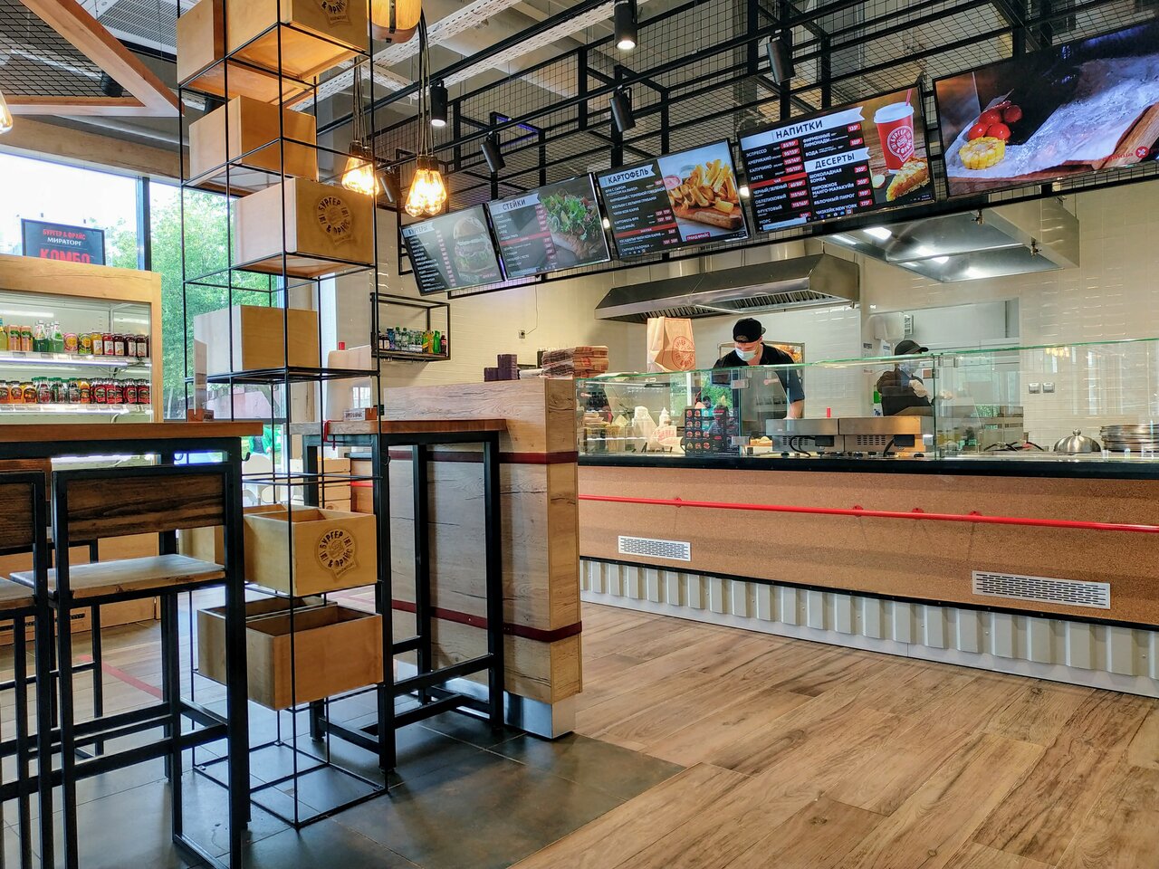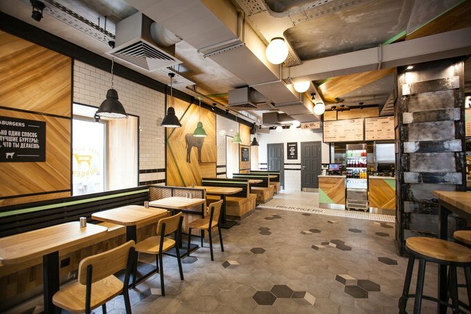 Одни точки Bb&Burgers работают на фуд-кортах в формате окошек на выдачу, другие — как полноценные кафе с лаконичным интерьером и широкими столами.