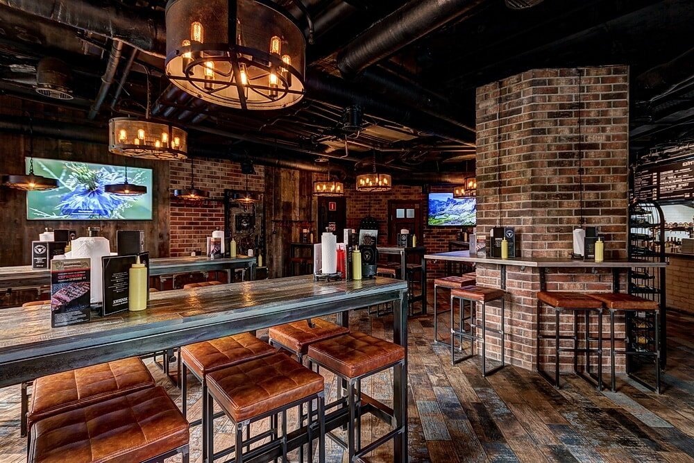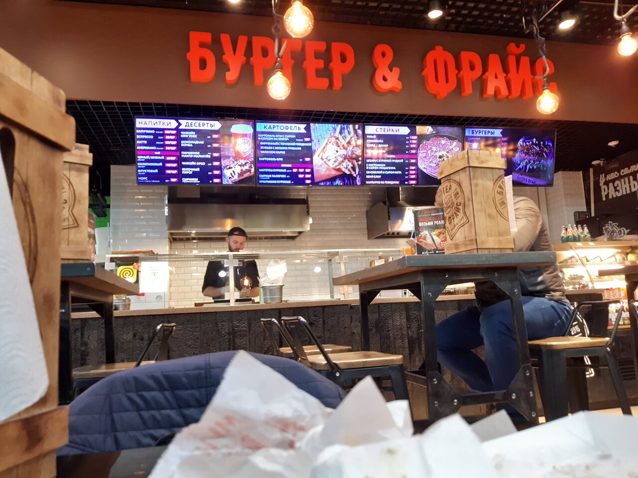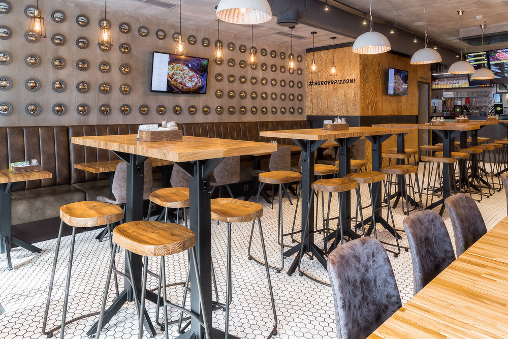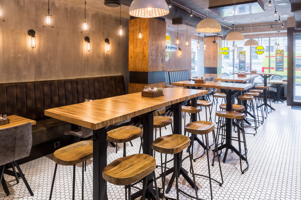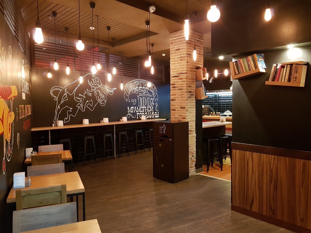 Одни точки Bb&Burgers работают на фуд-кортах в формате окошек на выдачу, другие — как полноценные кафе с лаконичным интерьером и широкими столами.