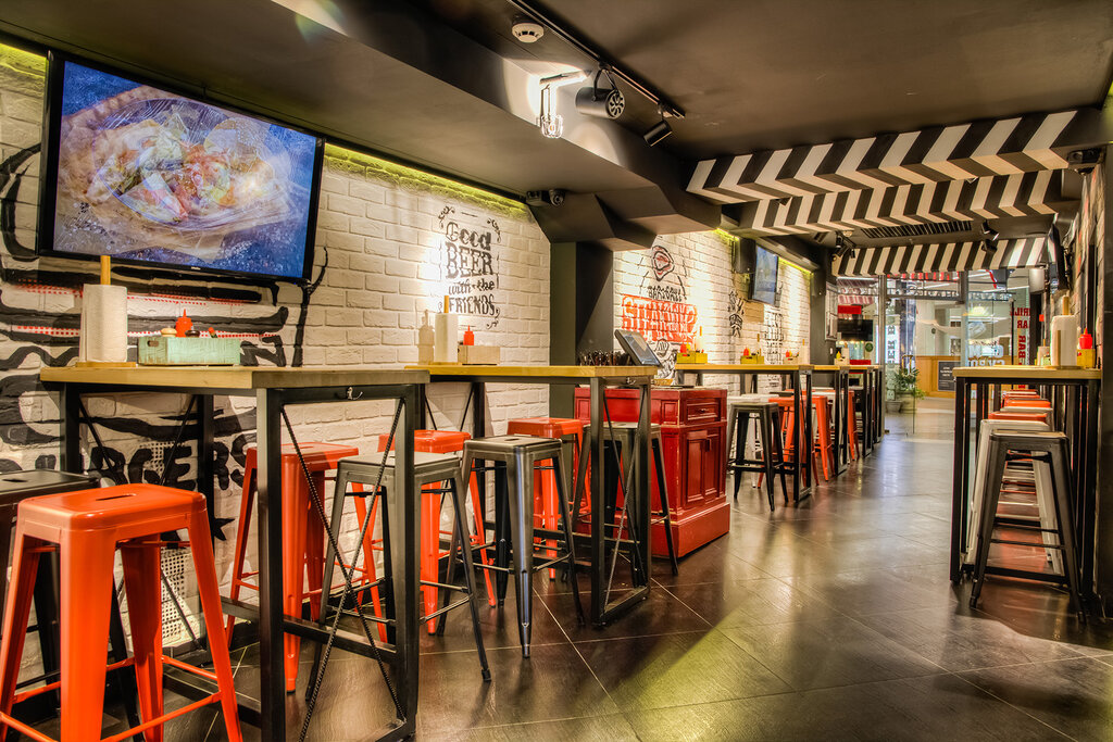 Часть бургерных работают обособленно, другие делят пространство с пивбарами — и там, и там найдется приличный выбор крафта и лимонадов.