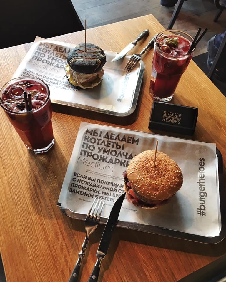 За шесть лет бургерная превратилась в масштабную сеть, а меню разрослось до 10 позиций. Классикой в Burger Heroes называют «Черную мамбу» — бургер на черной булочке с вишней, беконом и сыром чеддер. Также в меню есть закуски вроде сырных шариков или батата фри, стейки и салаты.