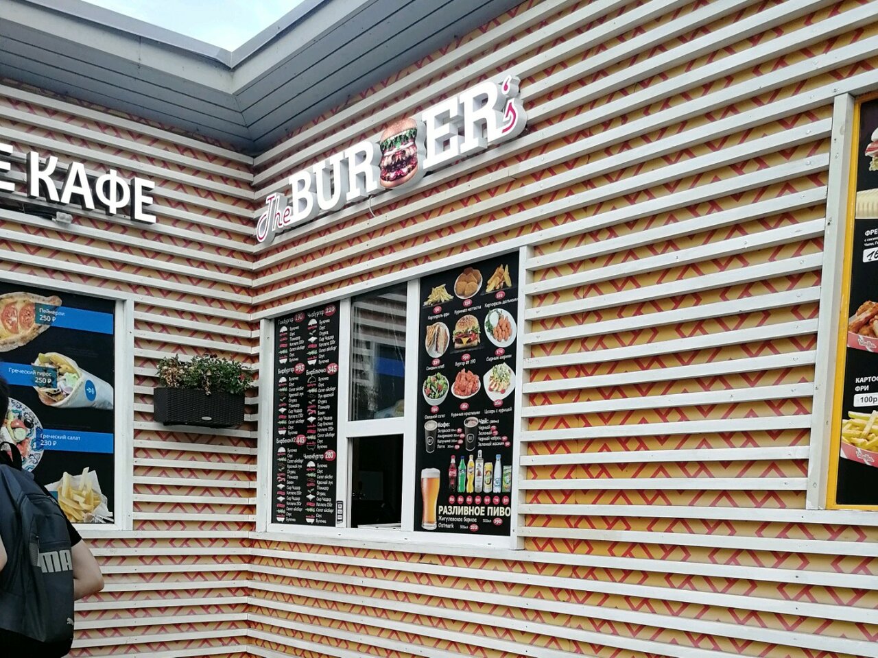 А еще пара хот-догов, картофель и батат фри, закуски, лимонад и пиво на кранах. Усесться можно внутри, под навесом у входа или на импровизированной веранде-газоне.