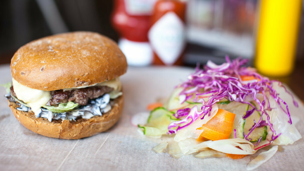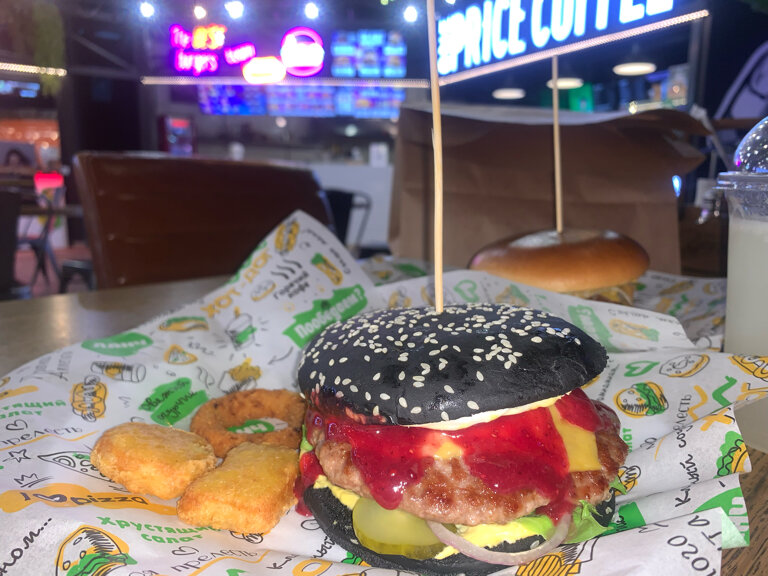 Сеть работает с 2013 года. Большинство бургеров готовят с классической говяжьей котлетой, но есть варианты с филе трески и курицей. Кроме бургеров предлагают добротную шаурму: в тонком лаваше, с обильной мясной начинкой и разными соусами.