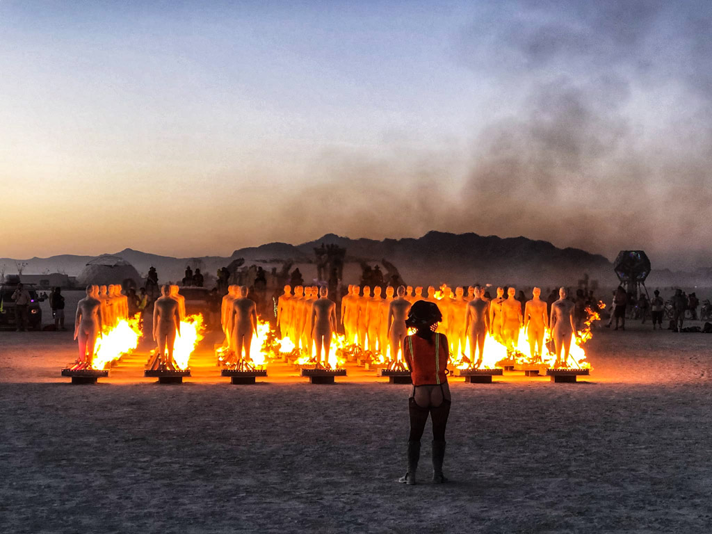 Кульминацией фестиваля «Burning Man Festival» считается сжигание большой деревянной скульптуры человека. Это происходит на шестой день праздника.