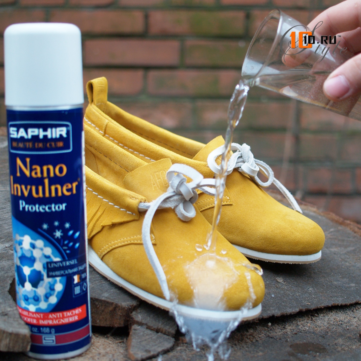 После этого можно заняться окрашиванием и защитой от влаги. Есть для этого специальное средство-восстановитель, которое хорошо окрашивает замшу и нубук и одновременно делает их устойчивыми к влаге. После обувь надо просушить и снова поднять ворс. Чтобы зафиксировать эффект, можно распылить водоотталкивающее средство.
