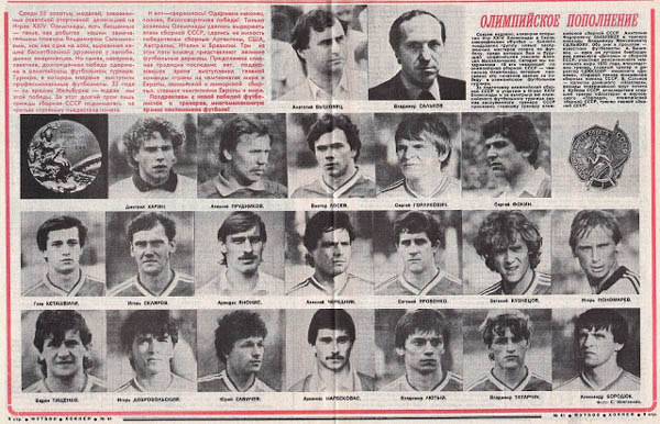 Некиевлянами были вратари Ринат Дасаев из московского «Спартака» и Сергей Краковский из «Днепра» Днепропетровск, товарищ Краковского по команде Олег Протосов из «Днепра», Геннадий Моросов из «Спартака» Москва, Александр Бубнов и Сергей Родионов также из «Спартака». , Александр Чивадзе из тбилисского «Динамо», Сергей Алейников из минского «Динамо», Николай Ларионов из «Зенита» (Санкт-Петербург), тогда известного как «Зенит-Ленинград», и еще один игрок «Днепра» Геннадий Литовченко.