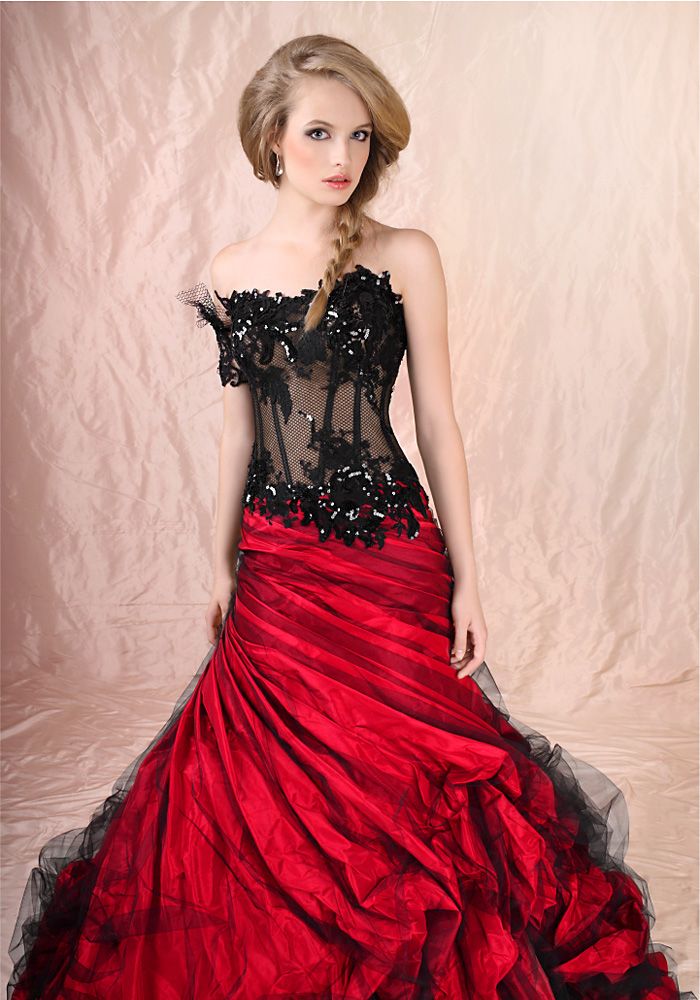 Платье Женское миди приталенное чёрное/красное нежное на одно плечо Мод.128