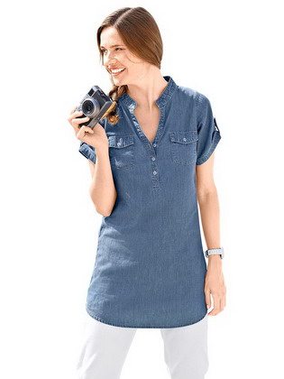 В моде джинсовые туники-рубашки. Они относятся к повседневному виду одежды. И также, как и туники из других материалов, они будут сочетаться с джинсами и джинсовыми юбками.