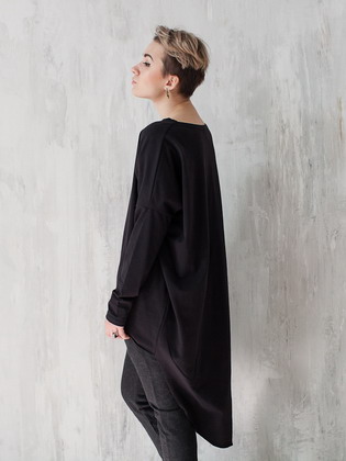 Чёрные туники могут быть как более классического, строго вида, так и спортивными или вечерними, богато украшенными. Расклешённые модели с завышенной талией подойдут тем, кто хочет скрыть проблемные зоны, или же беременным женщинам, так как ничто не будет давить на животик. Зауженные подойдут для выхода на праздничное мероприятие, для деловых встреч и работы. Широко распространены туники с ассиметричным кроем.