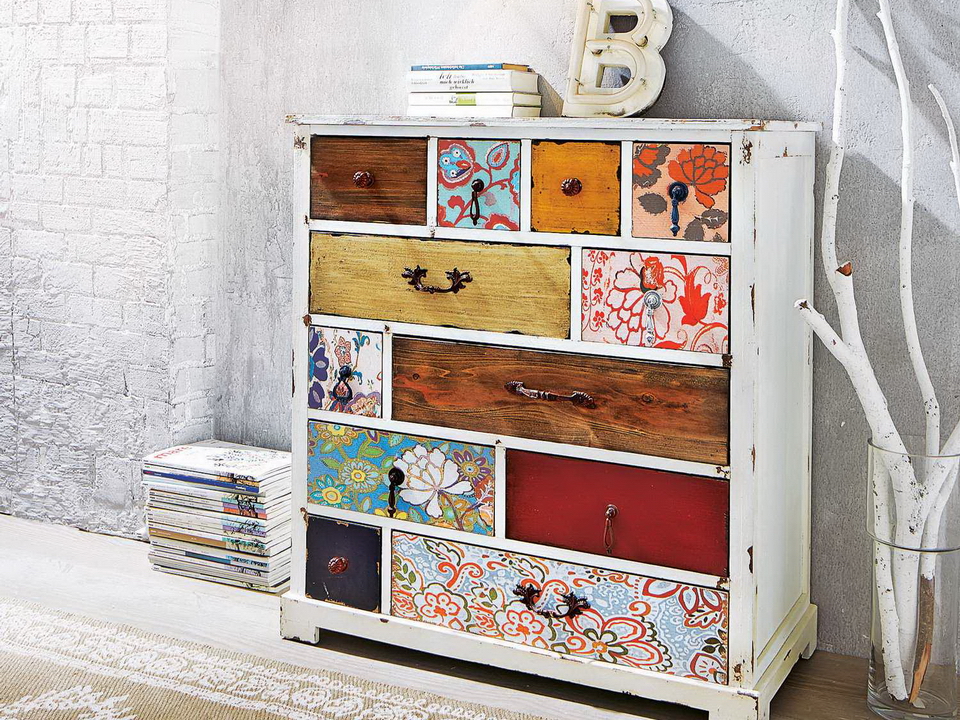 Сейчас в моде светлые тона, но вы можете придать мебели яркий оттенок или покрасить в нейтральный цвет, нанести рисунок, оклеить обоями, подарочной бумагой, пленкой. Используйте новую фурнитуру.