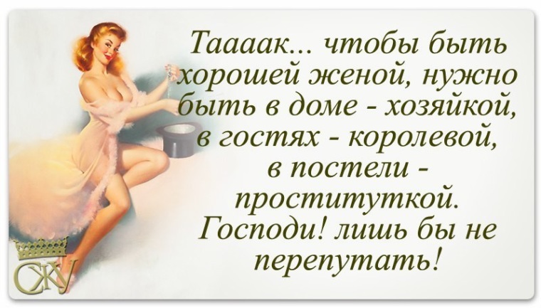 Мы вкусно готовим, чисто стираем, говорим, когда разрешат, и на интересные ему темы, стараемся экономить на себе и да, голова у нас не болит.