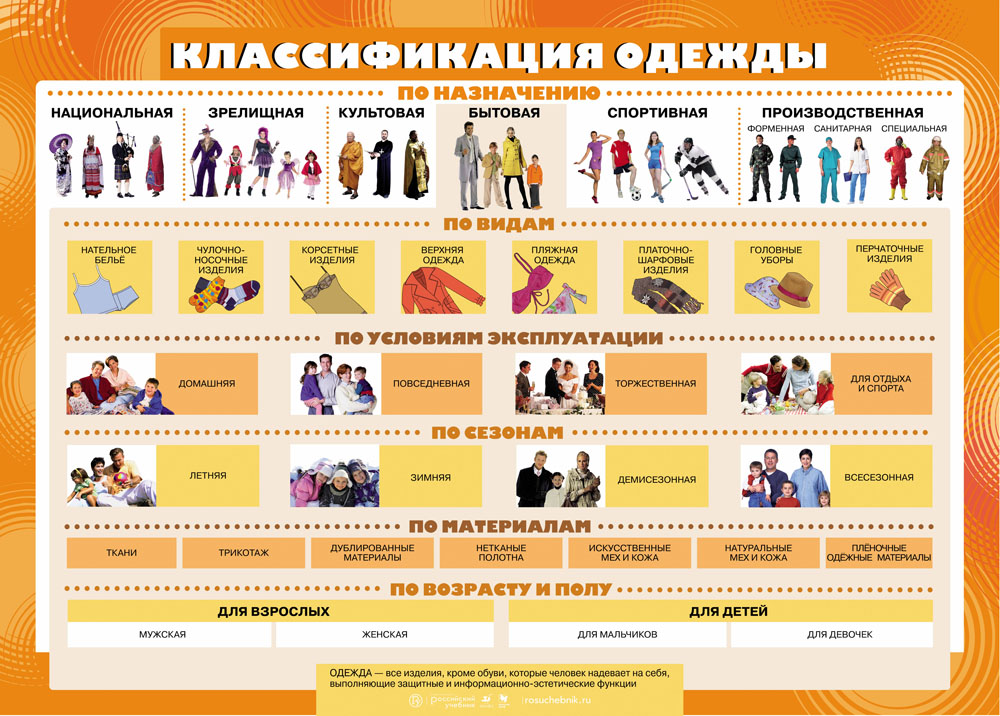 Предметы одежды, производимые производителями одежды, делятся на три основные категории, хотя их можно разделить на дополнительные, более конкретные категории: