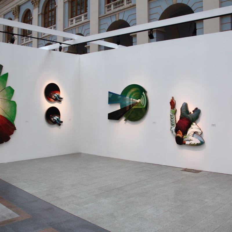 Another St Petersburg dealer, Nikolai Evdokimov turned his booth into a total installation made out of works by artist Dmitri Sirotkin (b. 1959). It showed traditional culture, represented by the Hermitage Museum, falling apart under harsh winds of a new reality. The project was called ‘The End of History’, and the institutional critique all the more striking as the artist was once a staff photographer of the Hermitage and had a solo exhibition at its General Staff annex. Ironically, the Hermitage’s own booth, named ‘Museum of the Year’ by Cosmoscow, was located just a few steps away.