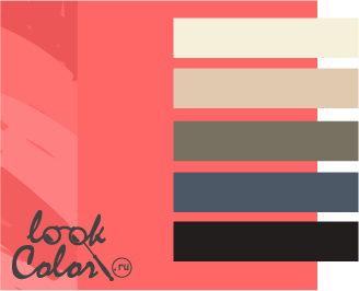 Живой Коралл сочетается с белым, бежевым, серым, черным, как с нейтральными или базовыми оттенками. Коралловый часто затмевает собой даже яркие оттенки, поэтому уравновешивание спокойными тонами наиболее важно. Белые тона приносят в сочетание свежесть, бежевые – элегантность, серые – вносят стиль, черные – эпатажность. Таблица составлена из папируса, бежевого, серо-коричневого, антрацитового, мокрого асфальта.