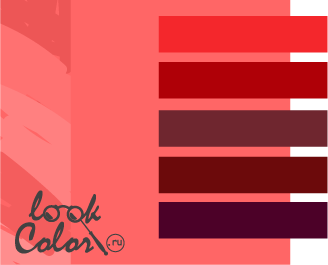 Модный цвет года и красный: сочетание насыщенно теплое, его контраст опирается на значительную или небольшую разность по светлоте, которая позволяет подчеркивать форму. Насыщенность красного держит в напряжении, а коралловый можно принять за светлый оттенок второго цвета. Палитра состоит из среднего красного, кораллово-красного, рубинового, рубиново-бордового, винного.