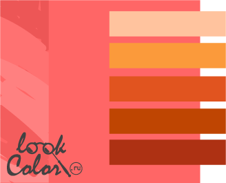 Живой Коралл сочетается с оранжевым. Данную комбинацию можно назвать сочетание в одной гамме, так как коралловый ближе всех к оранжевому, а так как последний не может быть слишком светлым или слишком темным, то палитра не будет иметь резких переходов и скорее станет фоном, чем самостоятельной композицией. В цветовой гамме присутствует персиковый, желто-оранжевый, кирпичный, красно-оранжевый, рыжий.
