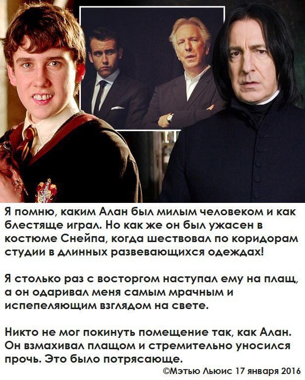 «Я только что вернулся из студии дубляжа, где в последний раз говорил в микрофон как Северус Снейп».