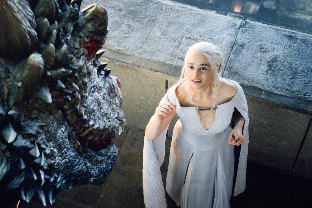 По сюжету «Игры престолов» Дейнерис смогла возродить драконьи яйца. Это произошло с помощью огня, в который Дейнерис вошла сама вместе с яйцами. С одним из них она до этого спала в обнимку. Оказалось, что огонь на нее никак не действует.
