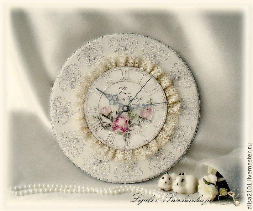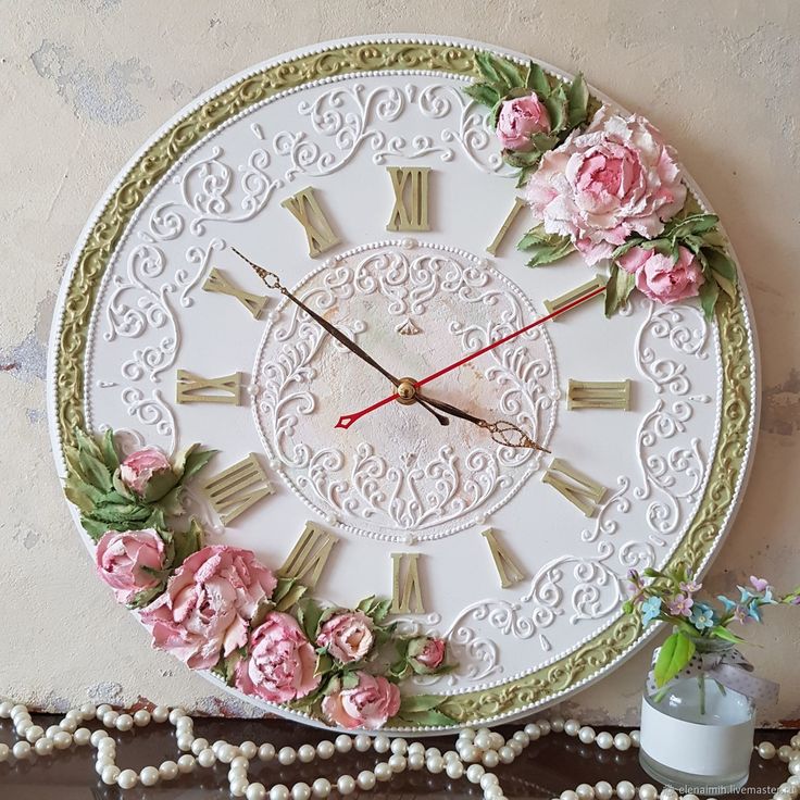 Часы в стиле прованс могут быть декорированы довольно разнообразно. Вот несколько примеров: