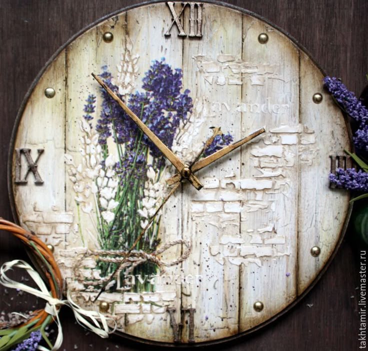 Примеры часов ручной работы в технике декупаж с сайта etsy.com