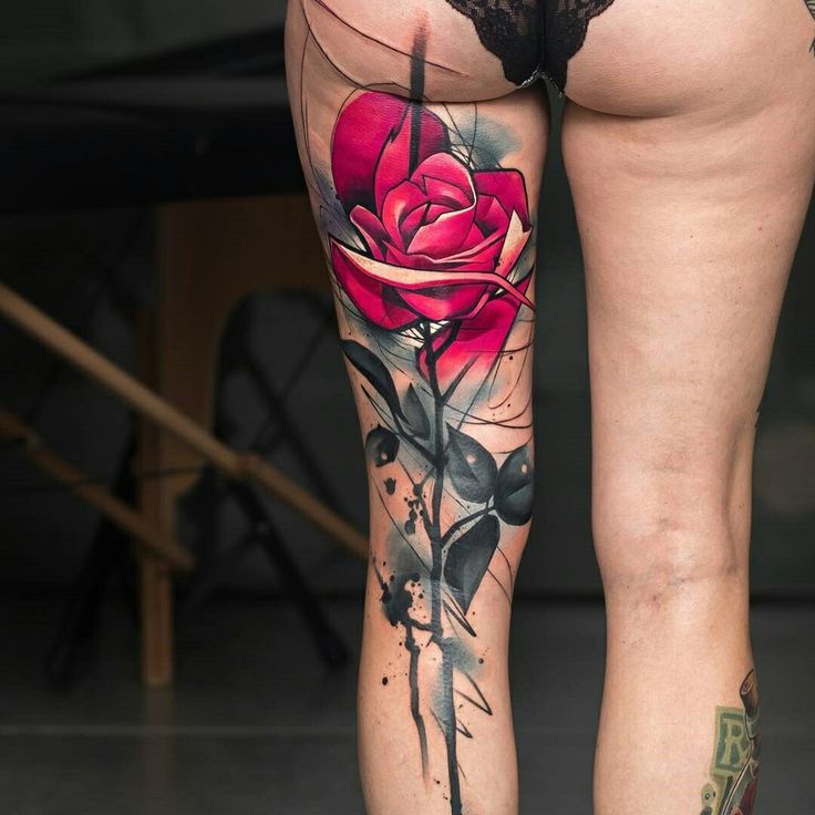 Все больше девушек выбирают это место для изображения. Ляжку всегда можно погладить, рисунком полюбоваться и сделать прекрасные снимки. Чаще всего на этом теле изображают цветы или животных.