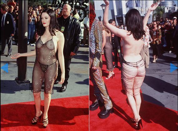 В далеком 2001 году певица Тони Брекстон произвела фурор весьма откровенным платьем, в котором передняя и задняя часть соединялись лишь небольшим ремешком, украшенным кристаллами. Платье примечательно еще и тем, что обнажило звезду с весьма непривычного ракурса: полностью закрытое спереди и сзади, оно максимально открыло тело сбоку, создавая иллюзию, что девушка вообще голая.