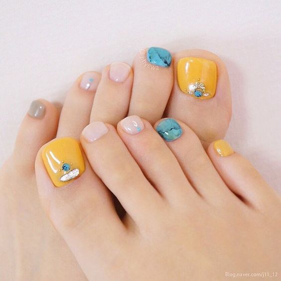 Разноцветный гель-лак на ногах: дизайн, фото 2017