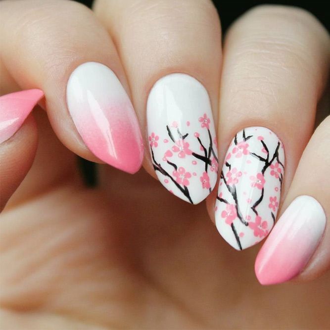 Если вы один из них, то этот маникюр с изображением сакуры покорит ваше сердце!