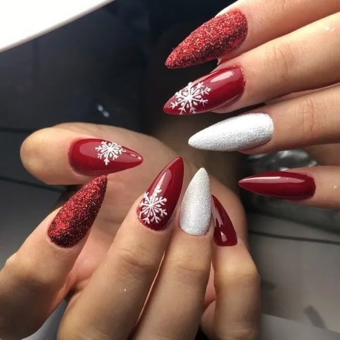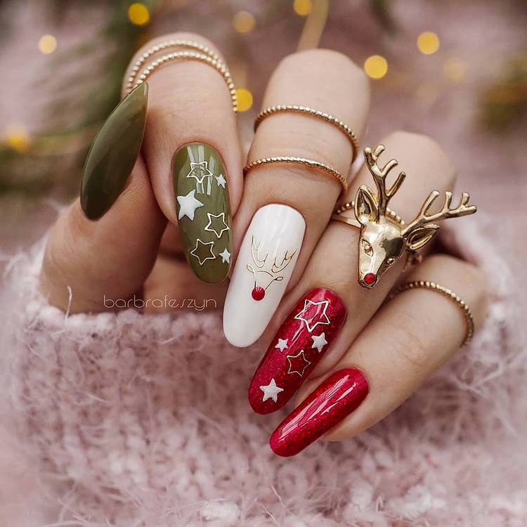 Они выглядят очень празднично и модно. Дизайн ногтей может включать в себя: разноцветные полосы, блестки. Это потрясающая идея, которая идеально подходит для тех, кто любит Рождество и традиционные праздничные оттенки, узоры.