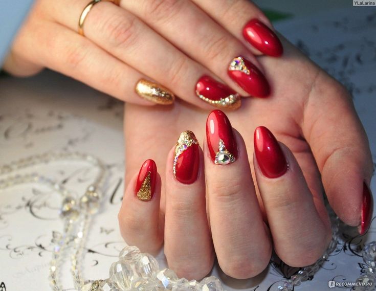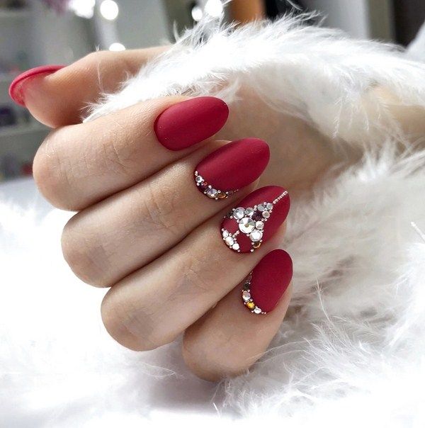 Множество различных камешков позволит вам создать поистине торжественный нейл-арт к встрече Нового 2019 года. Выбирайте цвет, большой и маленький, разные формы и эффекты, которые можно применить в одном дизайне, чтобы получить шикарный новый дизайн 2019 года.