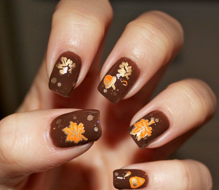 Темно-синий и следы осенних листьев? Мы влюблены! Эти гвозди не преминут показать вашу любовь к осени.