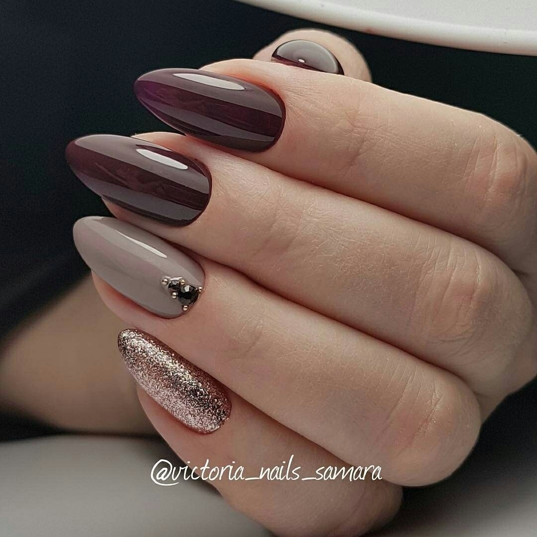 Обожаем этот дизайн ногтей! Сочетание нюдового и коричневого — такой осенний тренд. Если вы добавите немного блеска, и вдобавок вы получите образ, готовый к вечеринке.
