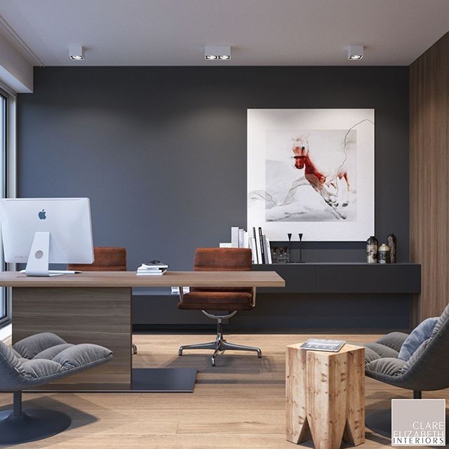 Выбирайте созвучный палитре дома. Если кабинет маленький или даже тесный, желательно выбирать для него