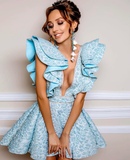 - Российские дизайнеры бренда «Ruban» создали феноменально красивое и нежное платье. Верхняя часть, благодаря гофрированной ткани и форме выреза, напоминает ракушку. Блестящая, прозрачная юбка голубого оттенка ассоциируется с морской водой. Шелковистый пояс четко выделяет талию у девушки. В таком платье хочется блистать и ловить завистливые взгляды.