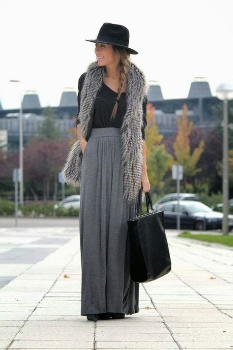 С чем лучше носить макси-юбку серого цвета?