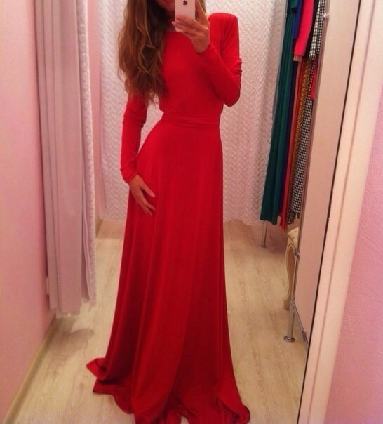 Длинное платье красного цвета не требует большого количества украшений. Достаточно одеть тонкую золотую цепочку, брошь или кольцо. К нему следует надевать чёрные или тёмно-красные туфли на высоком каблуке.