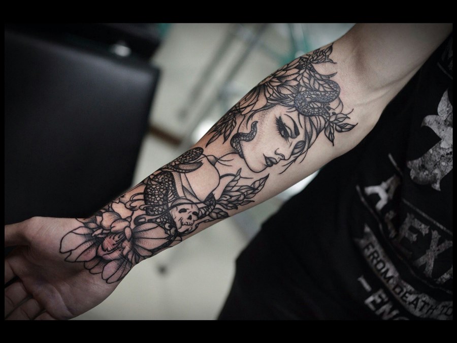 Создание абстрактного тату-рукава может быть трудным, потому что возможности действительно безграничны.![]()
